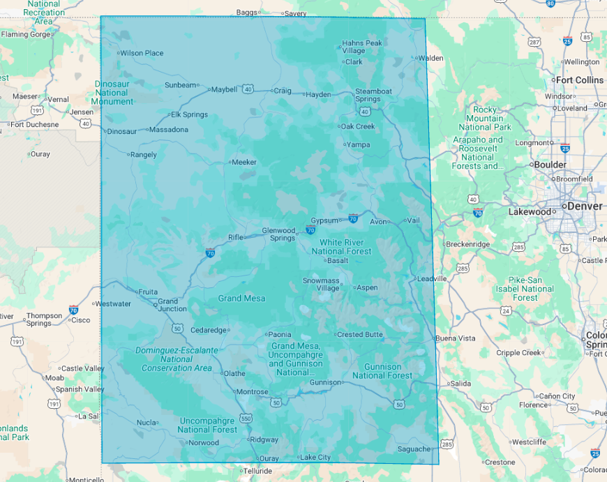 Serving North Western Colorado to the Wyoming and Utah borders, east to about Vail and Aspen, and south to Ouray, Norwood, Nucla area.